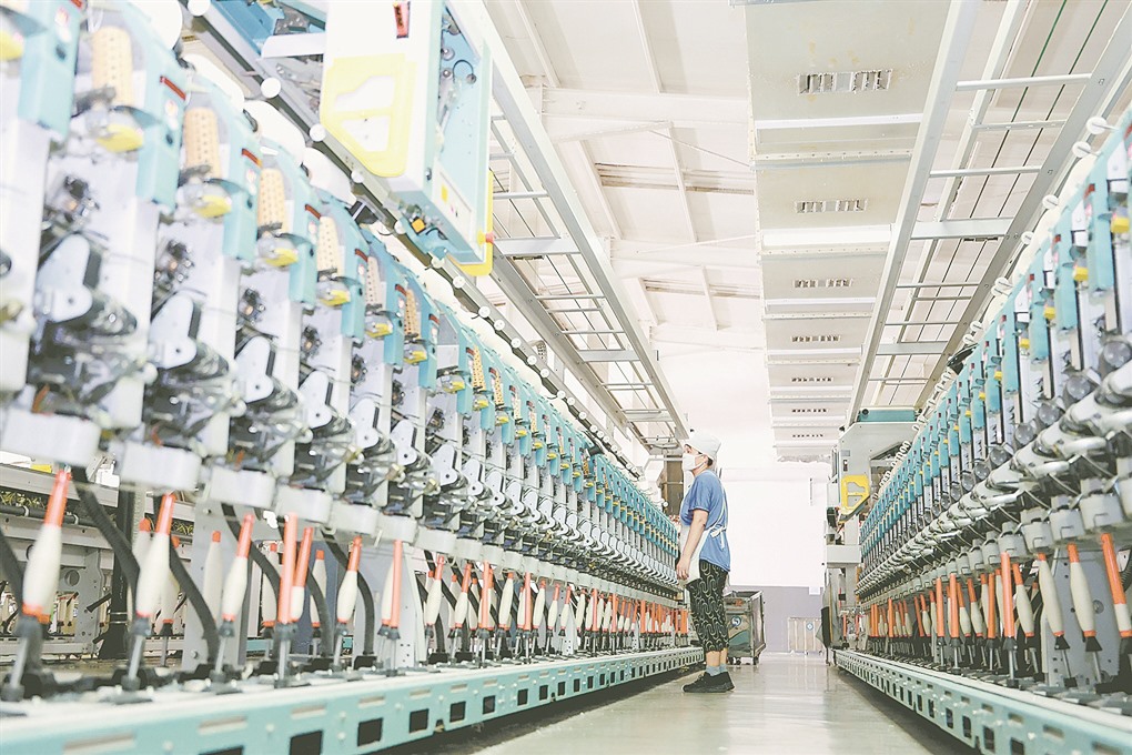 图为山东金号家纺集团有限公司数字化车间的智能生产线。
