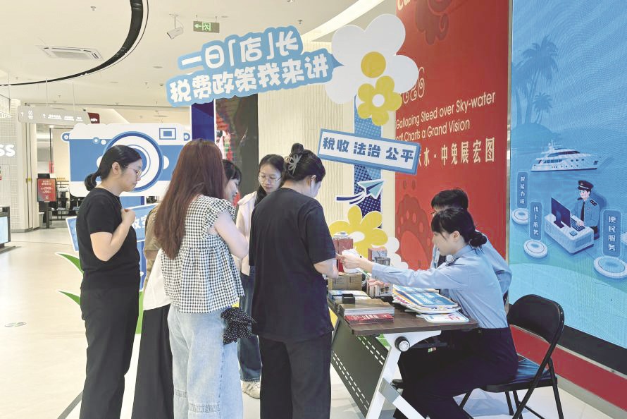 海口作为省会城市,税务部门联合海口综合保税区税务分局在日月广场免税店启动宣传,创新打造“一日店长”特色活动。业务骨干化身店长设立咨询台,为消费者、商户提供政策解答,同步推广“有奖发票”,引导公众规范开票、参与抽奖。省、市税务局还联动开展“椰税云谈·税话春风”直播,让税收政策以线上形式直达群众指尖。
