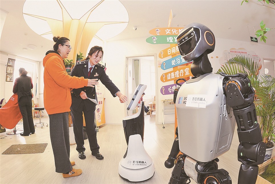 右图为该局联合北京经济技术开发区税务局开展税务合规宣传,税务干部在北京亦庄智慧康养机器人养老驿站了解相关税收政策落地情况。
